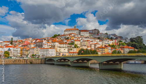 Obraz premium Scenic view of Coimbra city in Portugal with the University on the hill,...