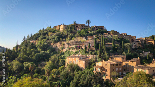 © A. Emson, Fototapeta premium Scenic view of Deia, Majorca against blue sky.