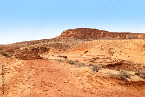 Fototapeta premium Scenic view of desert in Arizona at noon with blue sky