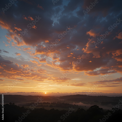 © ansa, Fototapeta premium Scenic view of dramatic sky during sunset