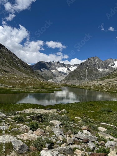 Fototapeta premium Scenic View of fordernsee, with the Aletsch Glacier on the background from...