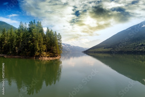 © vectorfusionart, Naklejka premium Scenic view of lake against cloudy sky