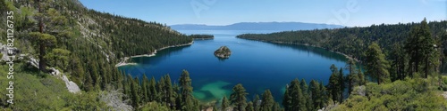 © Andrii Zastrozhnov, Fototapeta premium Scenic view of lake tahoe with emerald bay surrounded by pine forests