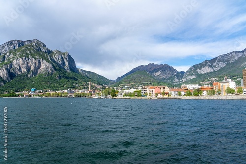 Fototapeta premium Scenic view of Lecco city with mountains and lake.