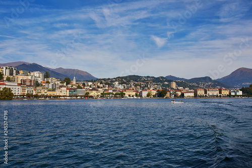 Fototapeta premium Scenic view of Lugano from the lake, Switzerland