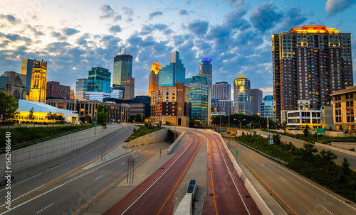 Obraz premium Scenic View of Modern Skyscrapers illuminated at night