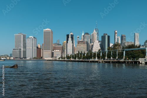 Naklejka premium Scenic view of New York City skyline from the waterfront on a sunny day