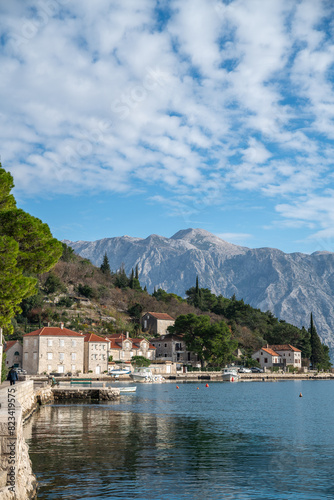 Fototapeta premium Scenic view of Perast, Montenegro with mountain views near the wonderful...