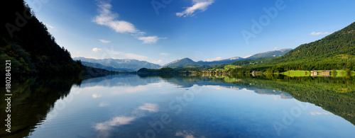 Obraz premium Scenic view of picturesque reflections in calm waters of Hallstatt lake or...