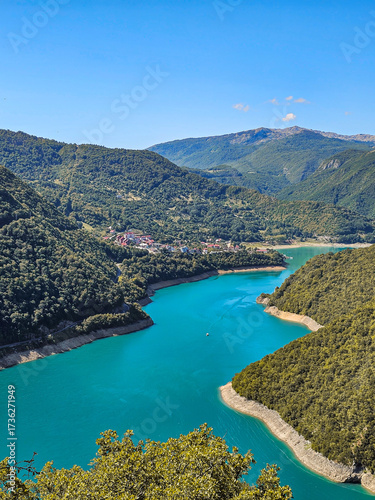 © Liana, Obraz premium Scenic view of Piva Lake mountains