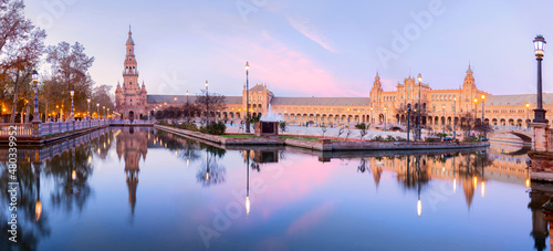 Fototapeta premium scenic view of Plaza de España The Plaza de España is a plaza in the Parque de María Luisa, Historical landmark in Seville sunset, Spain