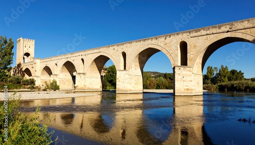 © Romeo, Fototapeta premium Scenic view of Pont Vieux, medieval bridge with arches in B?ziers, France