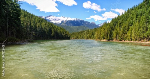 © vectorfusionart, Fototapeta premium Scenic view of river amidst forest against mountain