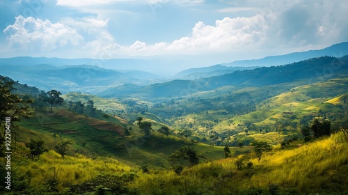 © Harvi, Fototapeta premium Scenic View of Rolling Green Hills and Blue Sky