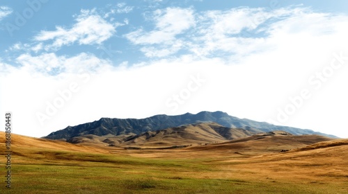 © mila103, Fototapeta premium Scenic view of rolling hills and blue sky with distant mountains.
