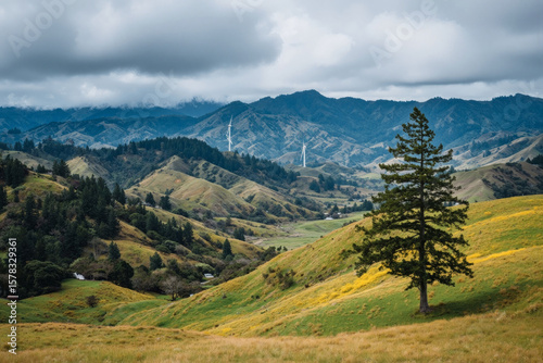 Fototapeta premium Scenic View of Rolling Hills and Wind Turbines
