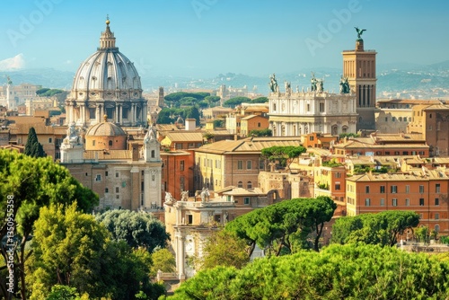 © Seno, Obraz premium Scenic view of Rome showcasing historic architecture and lush greenery under a clear sky