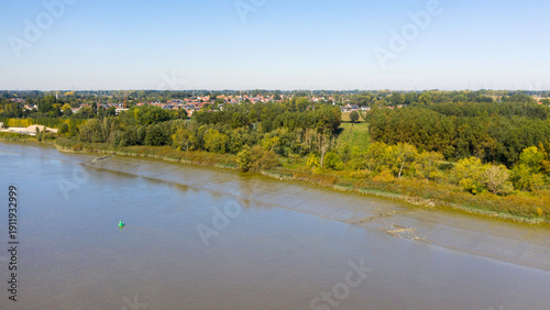 Obraz premium Scenic View of Scheldt River Between Temse and Buitenland