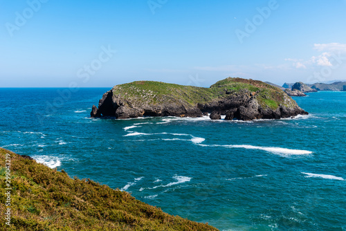 © jjfarq, Fototapeta premium Scenic view of sea against blue sky in rocky coast