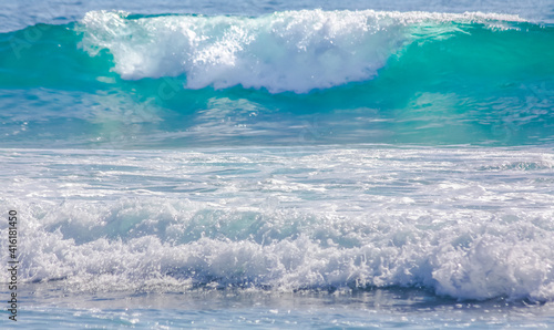 Fototapeta premium Scenic view of sea waves splashing on shore in Honolulu, Hawaii