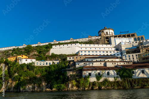 © iBennn, Obraz premium Scenic view of Serra do Pilar Monastery and historic hillside buildings by the Douro River in Vila Nova de Gaia, Portugal.