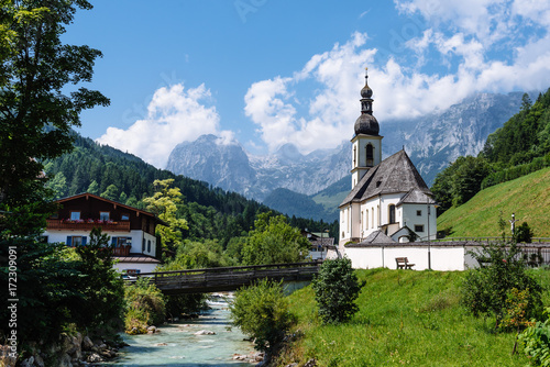 © jjfarq, Fototapeta premium Scenic view of small white church against mountains