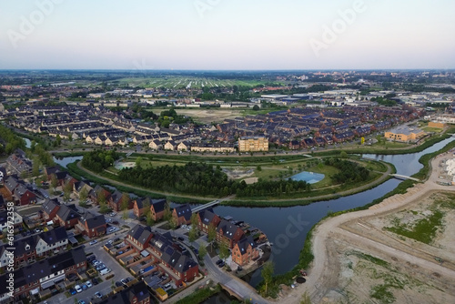 © Menyhert, Fototapeta premium Scenic view of suburban district "Triangel", a new neighbourhood in the town of Waddinxveen, Netherlands