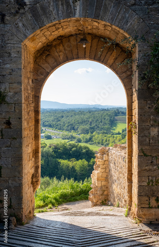 © Lois GoBe, Obraz premium Scenic view of the countryside at Porta San Giovanni, St John's Gate, in the small medieval town of Monteriggioni, Southern Tuscany, Italy.