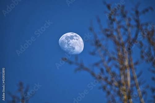 © Andreas, Fototapeta premium scenic view of the moon behind twigs and branches