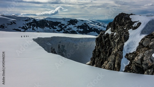 Naklejka premium Scenic view of the mountains in Folgefonna National Park, Norway, in winter