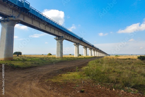 Fototapeta premium Scenic view of the Nairobi Mombasa Standard Gauge Railway line seen from...