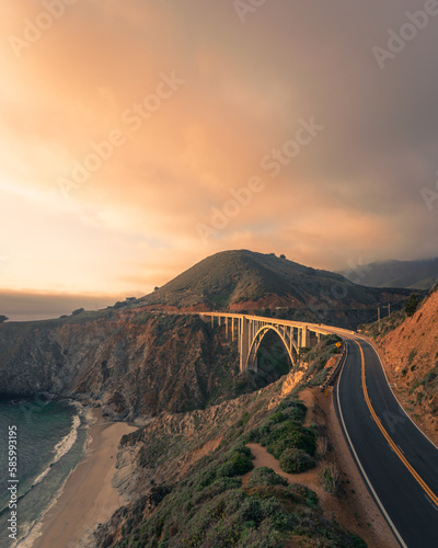 Fototapeta premium Scenic view of the Pacific coast highway and Bixby Creek Bridge in California, USA at sunrise