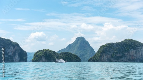Obraz premium Scenic view of the sea and island mountains in Phang Nga Bay, Phuket, Thailand.