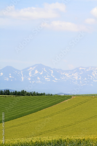 © Bossa Art, Fototapeta premium Scenic View of the Tokachi Mountain Range from Biei, Hokkaido, Japan