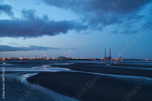 Fototapeta premium Scenic view on Dublin bay area while ebb with industry in background