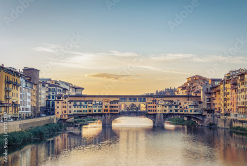 Naklejka premium Scenic view on Ponte Vecchio in Florence, Italy, on a summer day with...