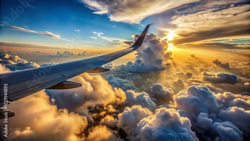 © Four888, Naklejka premium Scenic View Over Clouds from an Aircraft Wing