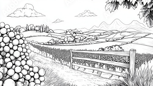 © Sakdecha, Fototapeta premium Scenic Vineyard Landscape in Black and White