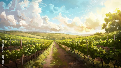 © Thinnawat, Naklejka premium Scenic Vineyard Landscape under Bright Skies
