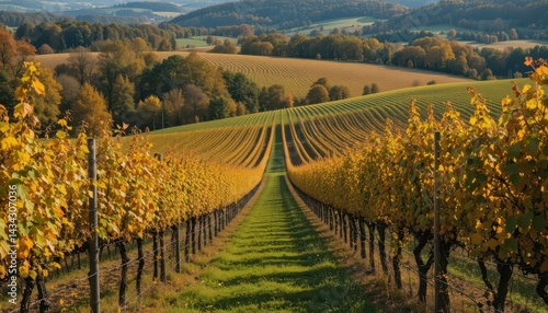 Fototapeta premium Scenic Vineyard Landscape with Autumn Foliage and Rolling Hills