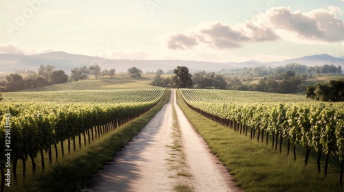 © musa, Fototapeta premium Scenic vineyard road at sunset.