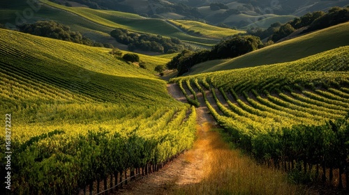 Fototapeta premium Scenic Vineyard with Soft Rolling Hills and Green Rows