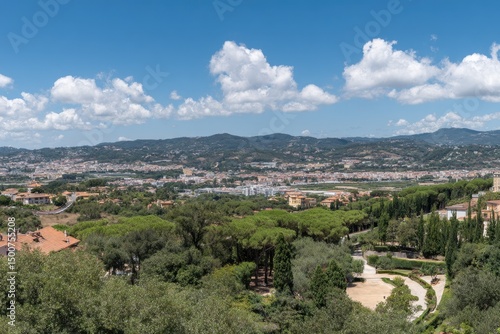 © BlueKey, Fototapeta premium Scenic Vista Town Nestled Among Green Mountains