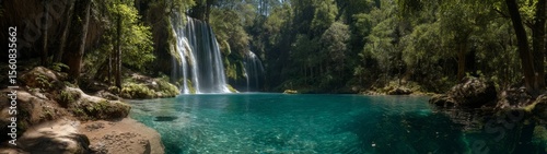 © HDR Image Creator, Fototapeta premium Scenic waterfall adventure nature hdr 360 degrees hdri panoramic view