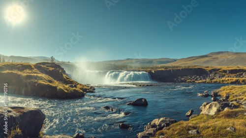 © Nurul, Obraz premium Scenic waterfall cascading into a river