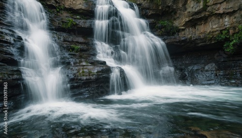 © Asad, Fototapeta premium Scenic Waterfall in Lush Green Forest