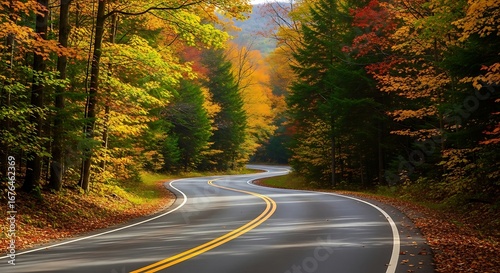 © Rans photography, Obraz premium Scenic Winding Road Through Colorful Autumn Forest Trees