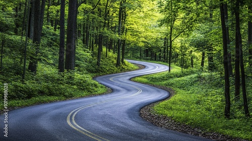 © WS Studio 1985, Naklejka premium Scenic Winding Road Through Lush Green Forest