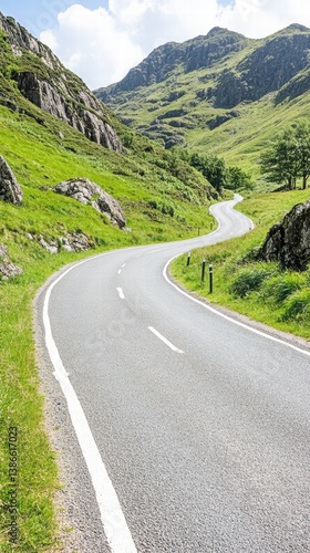 Fototapeta premium Scenic Winding Road Through Lush Green Mountains and Hills