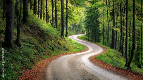 © ckybe, Fototapeta premium Scenic winding road through the lush, mountainous forests of Tyrol, Austria.